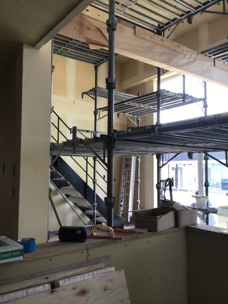お家の中は、壁・天井仕上げのため足場を組んでいます。これから漆喰を施工していきます。
