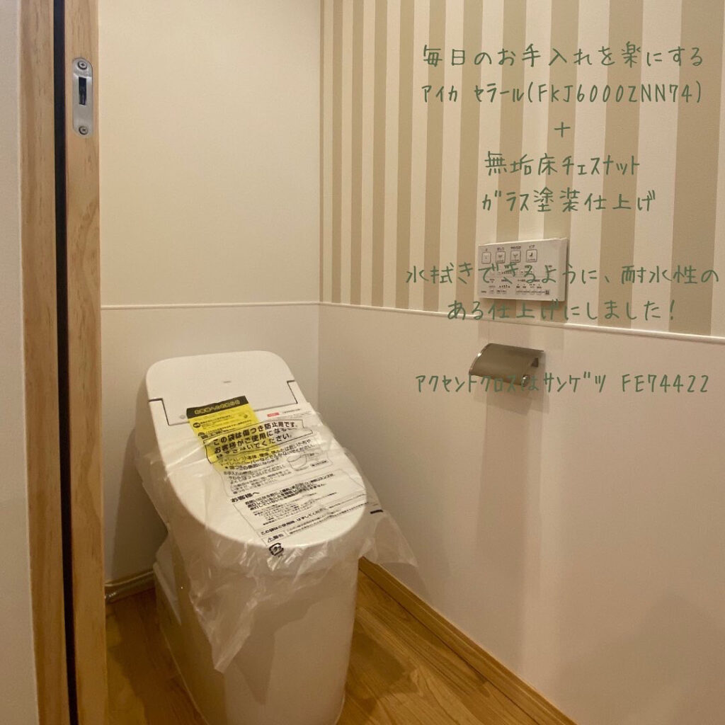 壁面にもお掃除楽々ポイント!アイカ工業のセラール(FKJ600ZNN747)を施工。セラールはキッチン周りにも使用される材料で、洗剤をつけてこすってもOK。さらに壁紙とは違い匂いを吸収しないところも嬉しいところです(^^♪