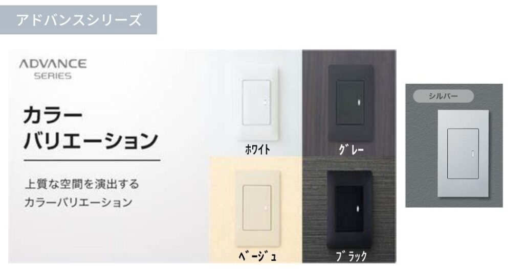 Panasonicのアドバンスシリーズと比較すると、無機質でマットな質感です。ほたる無し(表示なし)スイッチのデザインは、正直神保Jワイドスリムの圧勝ですね。