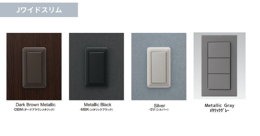 弊社では採用率が低い商品ではありますが、角ばったスクエアプレートとメタリック調のカラーが特徴的なスイッチです。