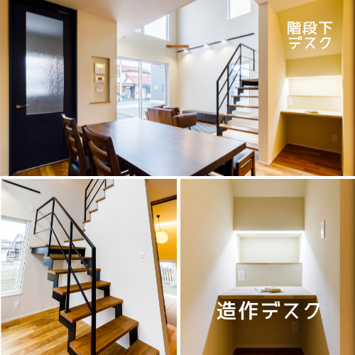 階段下に造作デスクと照明を設けることで、書斎にすることが可能!