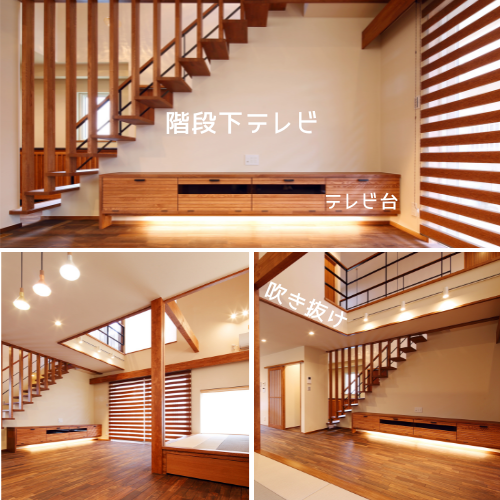 ちらのお家では、階段下にテレビを設置できるよう設計されています。