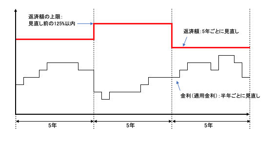 - 5年ルール:半年ごとに金利が見直されるものの、5年間は返済額が変わらない。