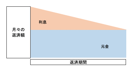 元金を返済期間で均等に割り、残高に応じて利息を加えた返済方法。