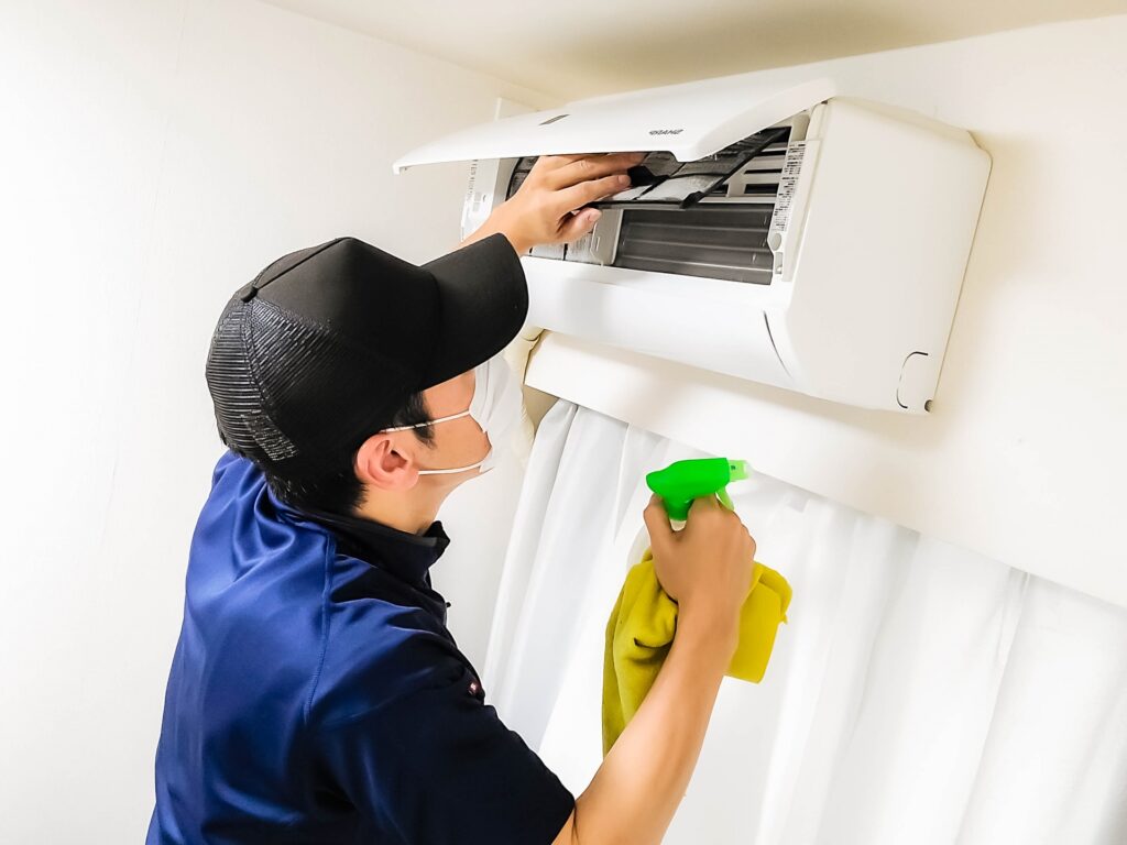 それからフィルターを取り外して掃除機でホコリを取り、フィルターを水洗いします。また室外機は、汚れを拭き取り、ファンの手前にあるメッシュに付着している汚れやゴミを取り除きましょう。