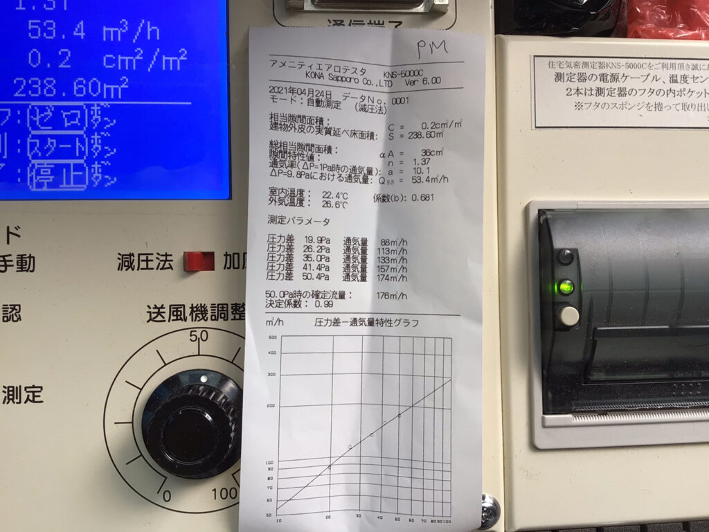 結果は、午前C値0.1㎠/㎡・午後C値0.2㎠/㎡でした。