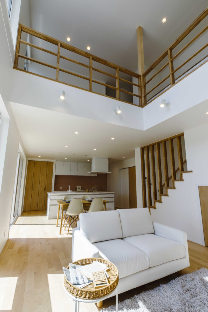 吹抜けからの自然光が心地よいLDK