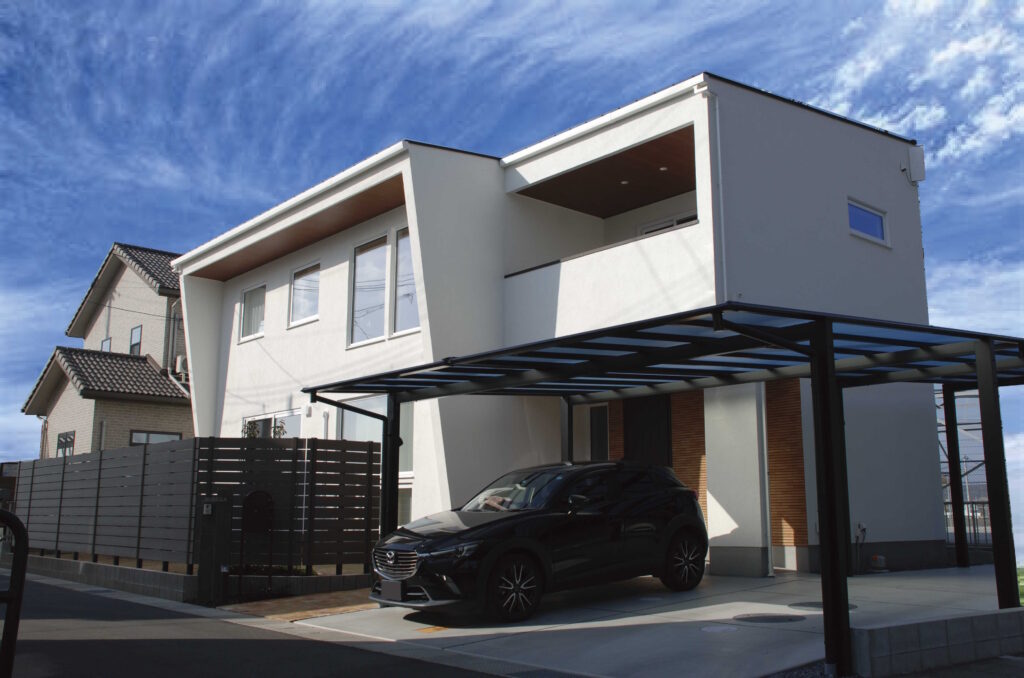 タイルと軒の木目が、白い外壁をより美しく魅せるナチュラルモダンな外観に仕上がりました。