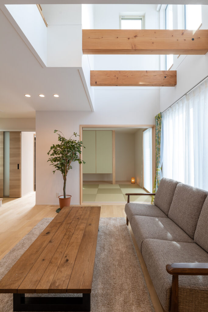 リビングの上部に設けられた吹き抜けや、