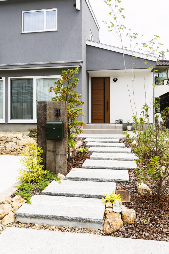 自然素材 グレー塗り壁のお家