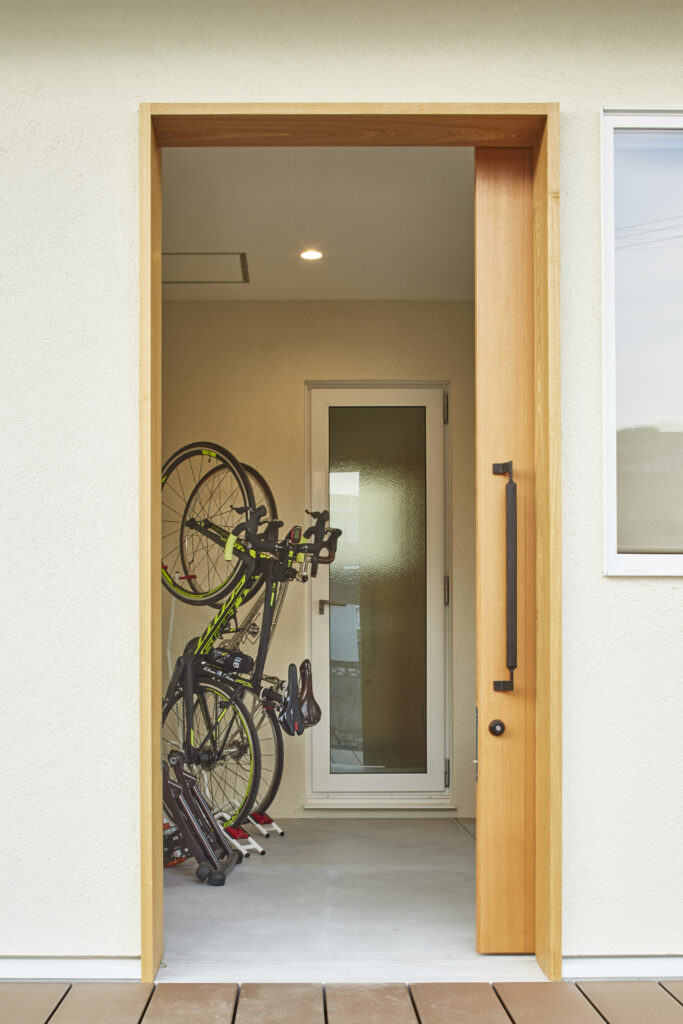 スポーツバイクは夫婦揃っての趣味で専用ガレージを設けています。