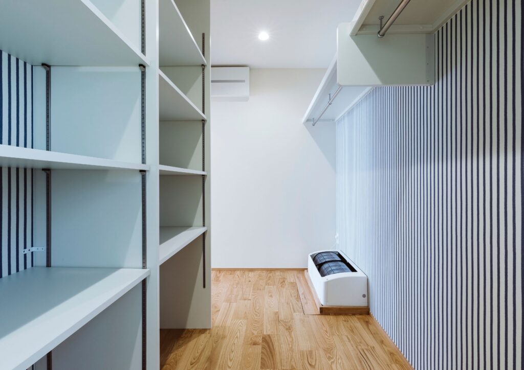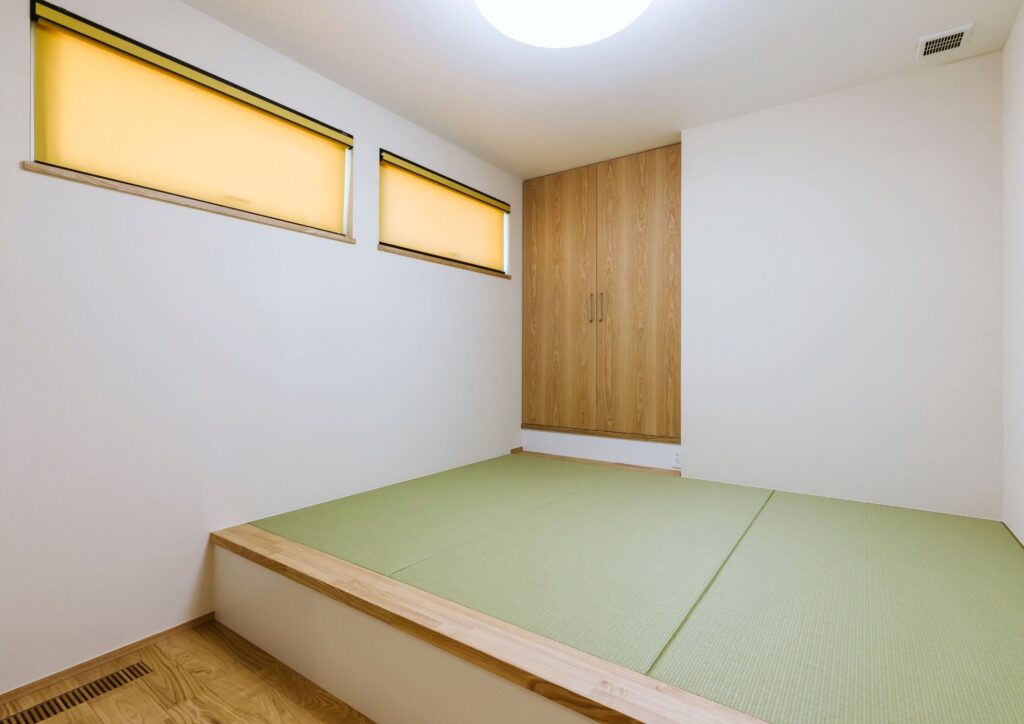 この和室はおばあちゃんのお部屋に。背の低いおばあちゃんにも使いやすいよう、吊り押し入れを採用。