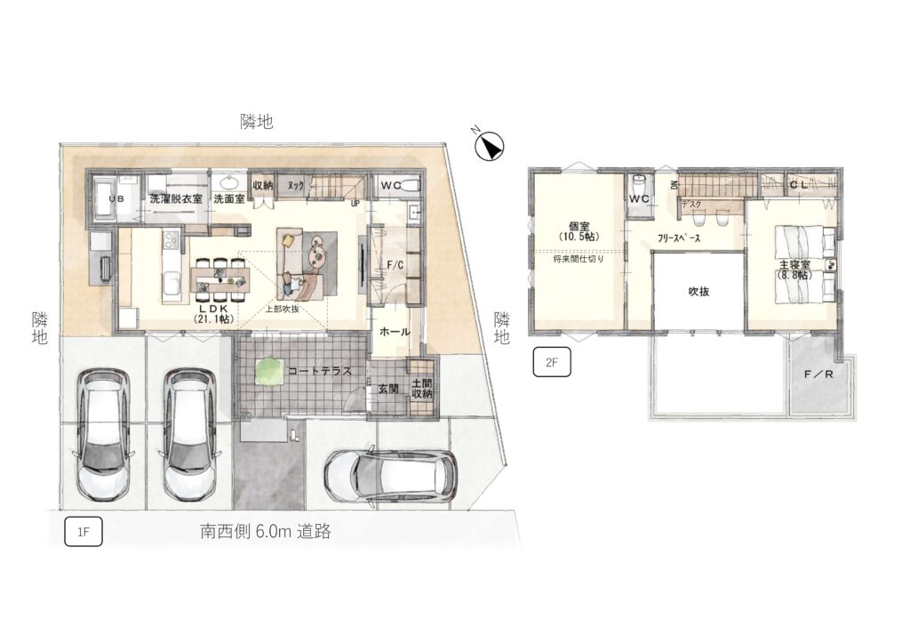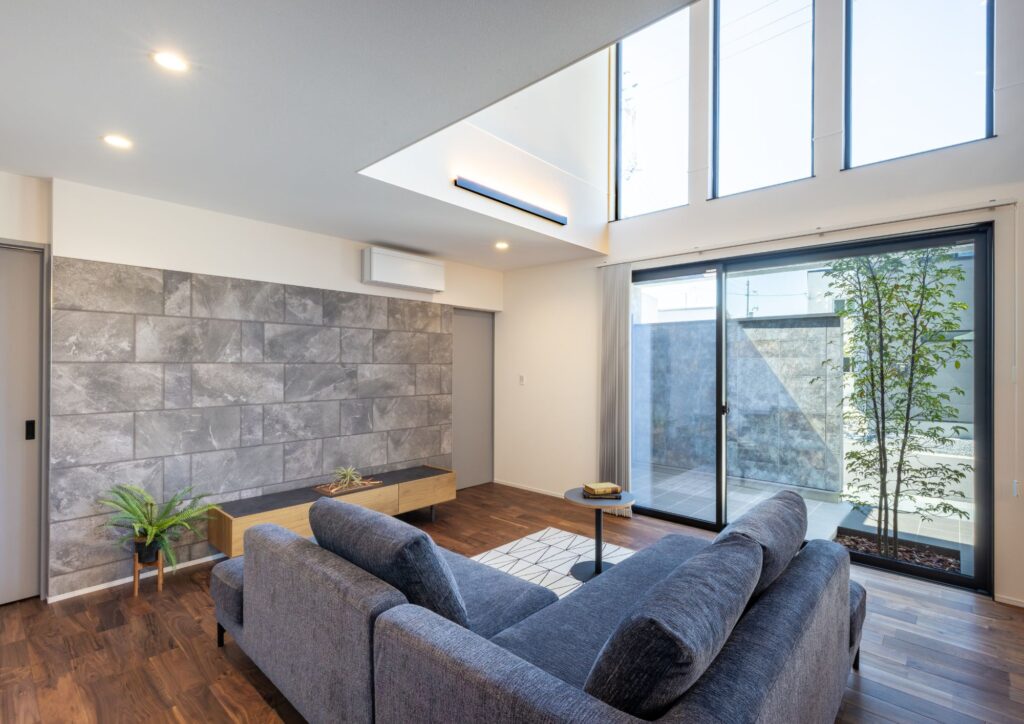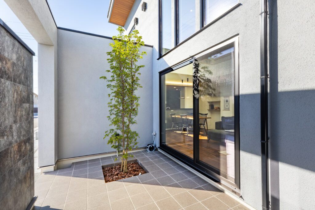「コートテラスでプライベートを楽しむ住まい」、広谷モデルハウス。